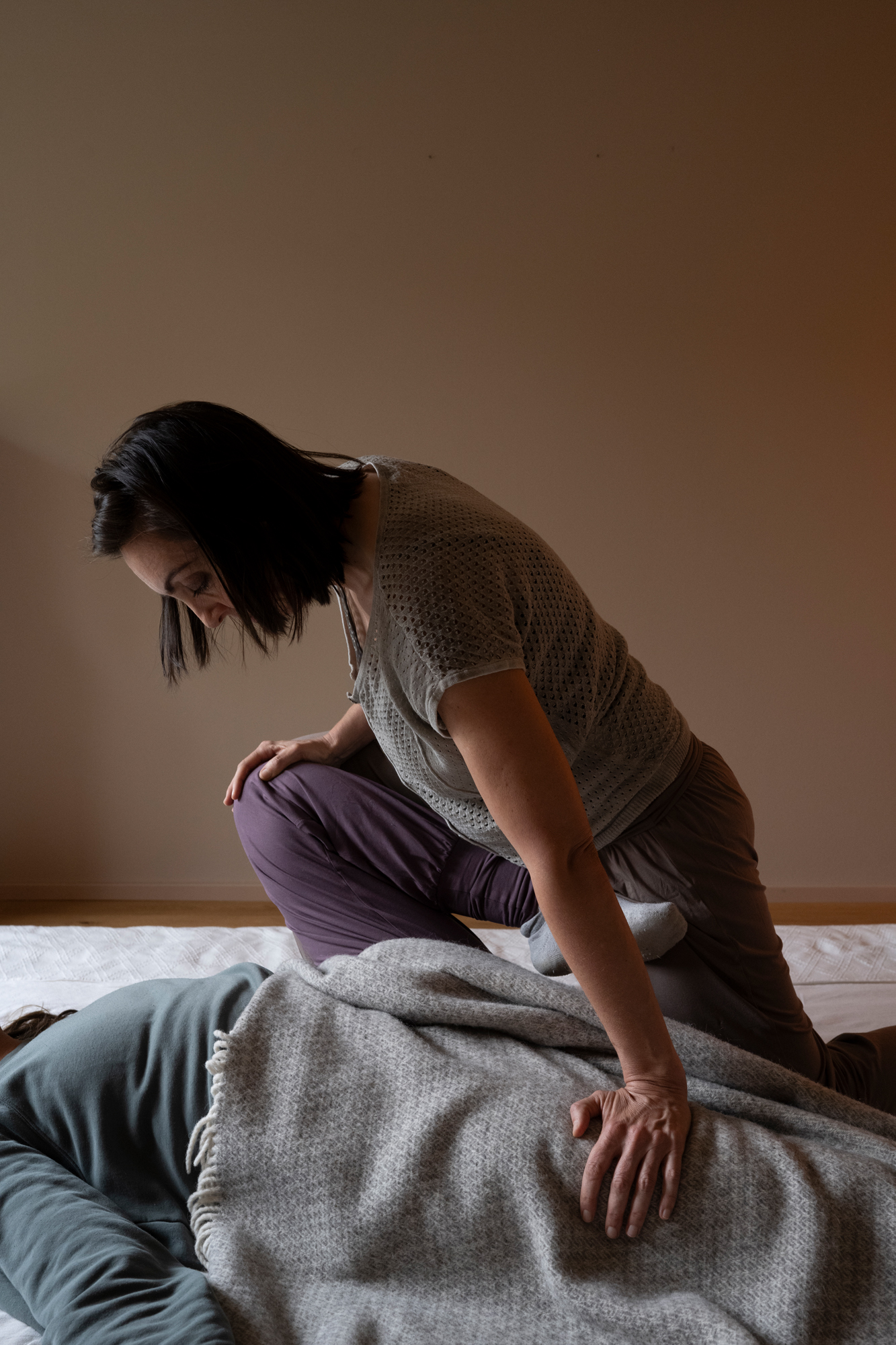 Keine Behandlung verläuft genau gleich. Je nach Bedürfnis wird sehr fein und still, oder dynamisch und tief mit dem Körper gearbeitet. Mit sanftem Druck von Daumen, Handflächen, Ellenbogen und Knie werden Akupunktur-Punkte und Meridiane behandelt.